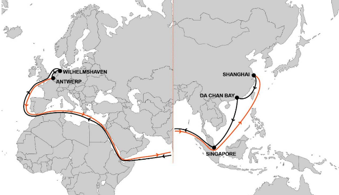 11月起,赫伯罗特,中德快线CGX,挂靠上海和安特卫普