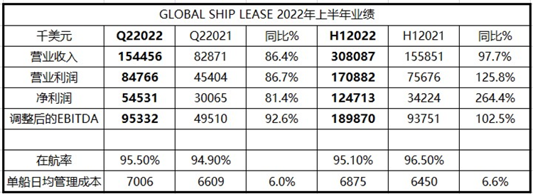 GLOBAL SHIP LEASE,六艘集装箱船,远期租约