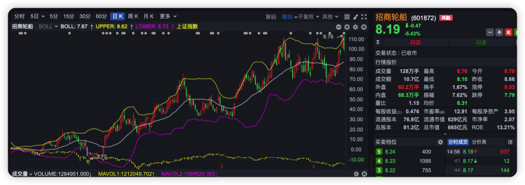招商轮船,前三季度,净利38.65亿元,股价新高
