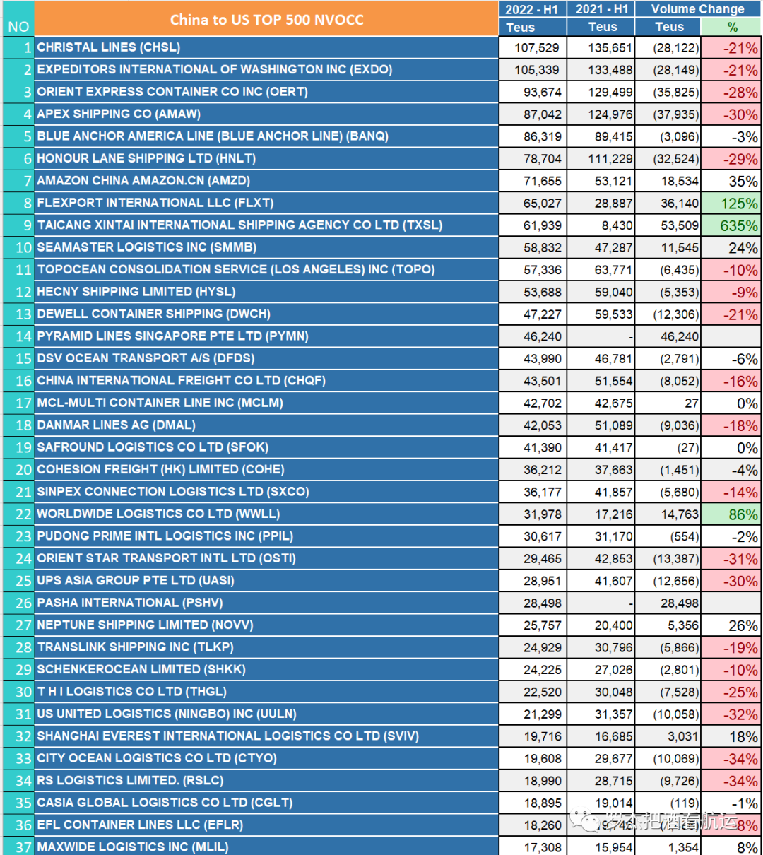 群雄逐鹿:2022年上半年中国前500名美线货代排行榜
