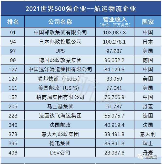 最新世界500强出炉,中远海运排名超越马士基和达飞