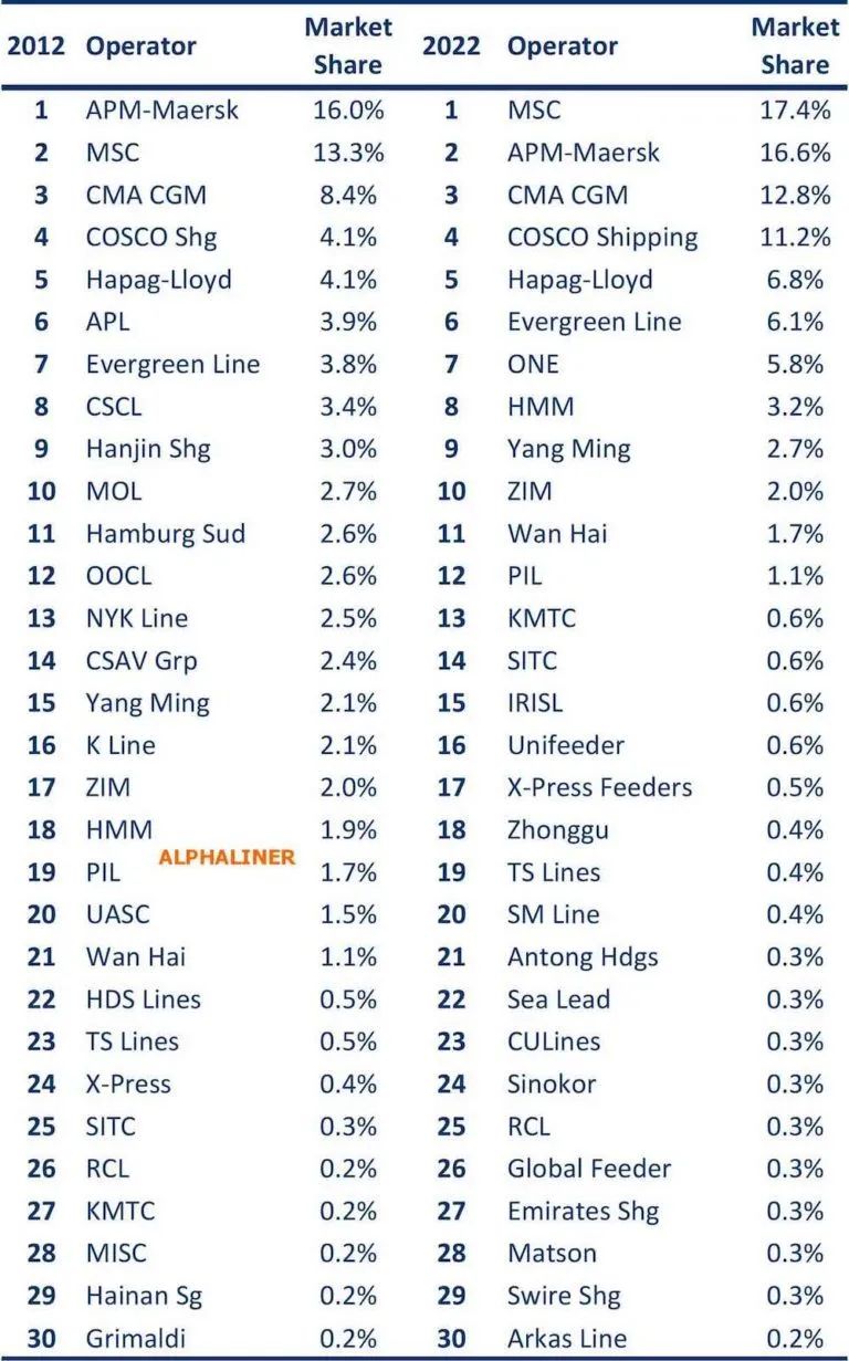 差距拉大!排名前十的船公司的运力规模和盈利增长远超其他船公司